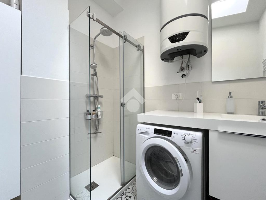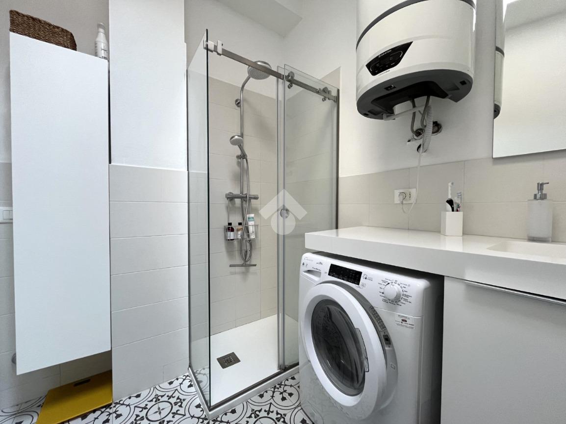 la porta d’ingresso è blindata, gli infissi delle ampie vetrate sono in pvc con doppio vetro, i lucernai di soggiorno e bagno sono apribili elettricamente, è presente l’impianto d’allarme, il riscaldamento e il raffreddamento sono centralizzati tramite fan-coil e gestibili autonomamente, lo scaldabagno è elettrico e il piano cottura è a induzione rendendo l’appartamento completamente gas-free, il tetto è autoventilato garantendo un ottimo isolamento, la pavimentazione è in parquet in tutti gli ambienti tranne in bagno dove troviamo delle particolari piastrelle con motivi bianchi e neri che danno carattere all’ambiente.