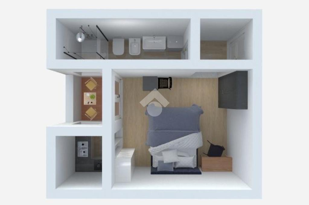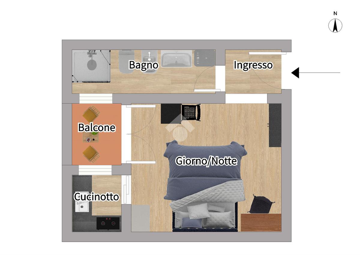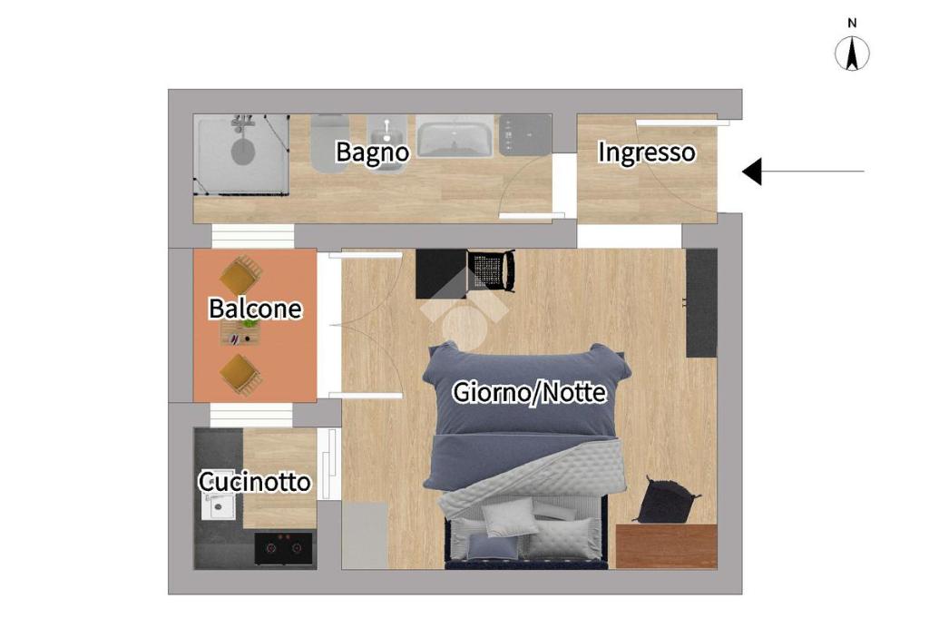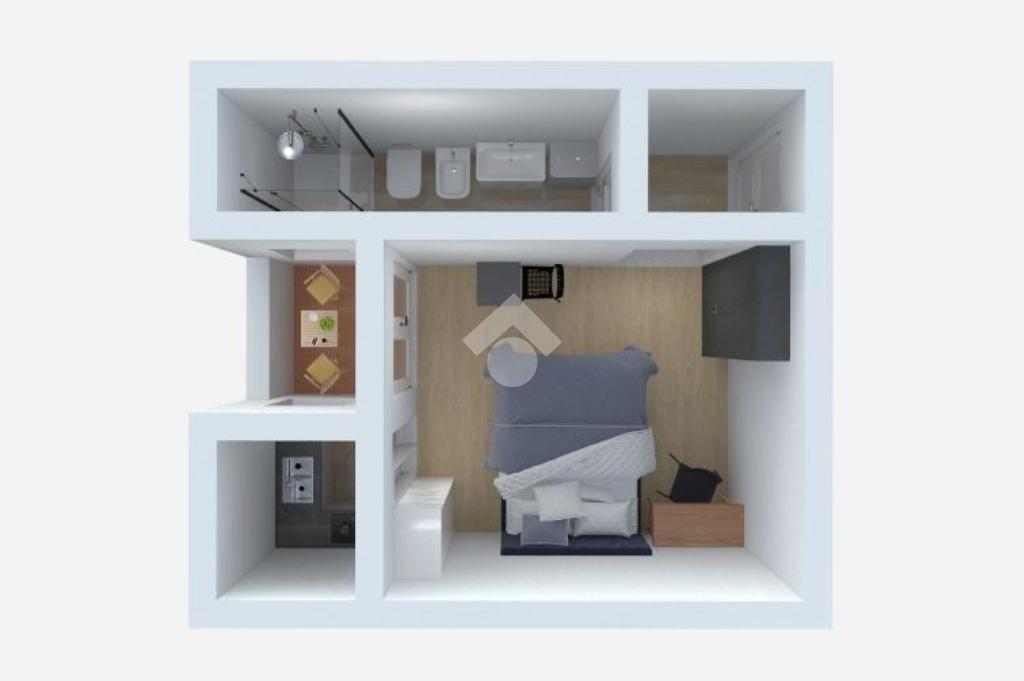 L'immobile si compone di ingresso su disimpegno, zona giorno/notte con accesso al balcone, cucinotto separato con piastre elettriche, bagno finestrato con box doccia.