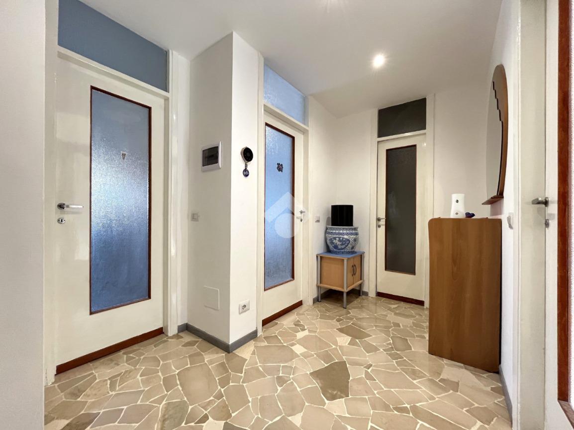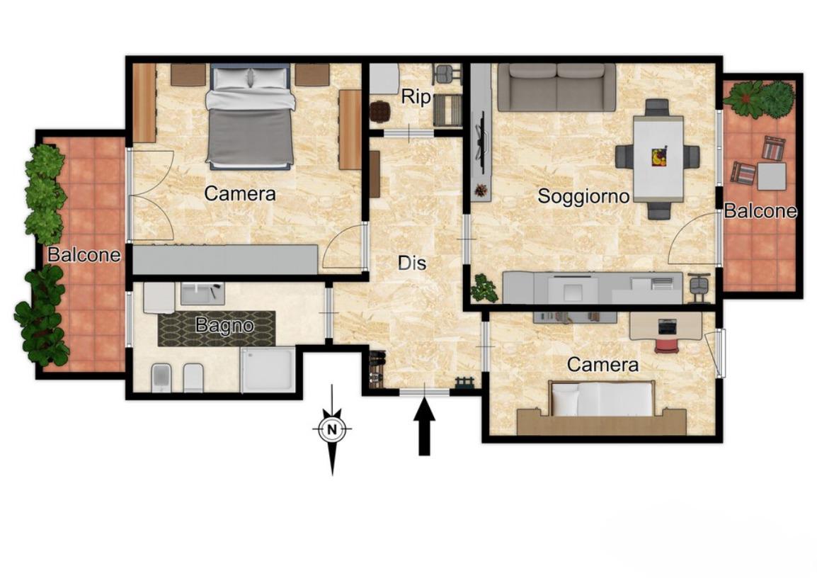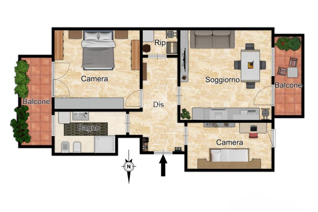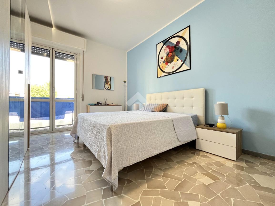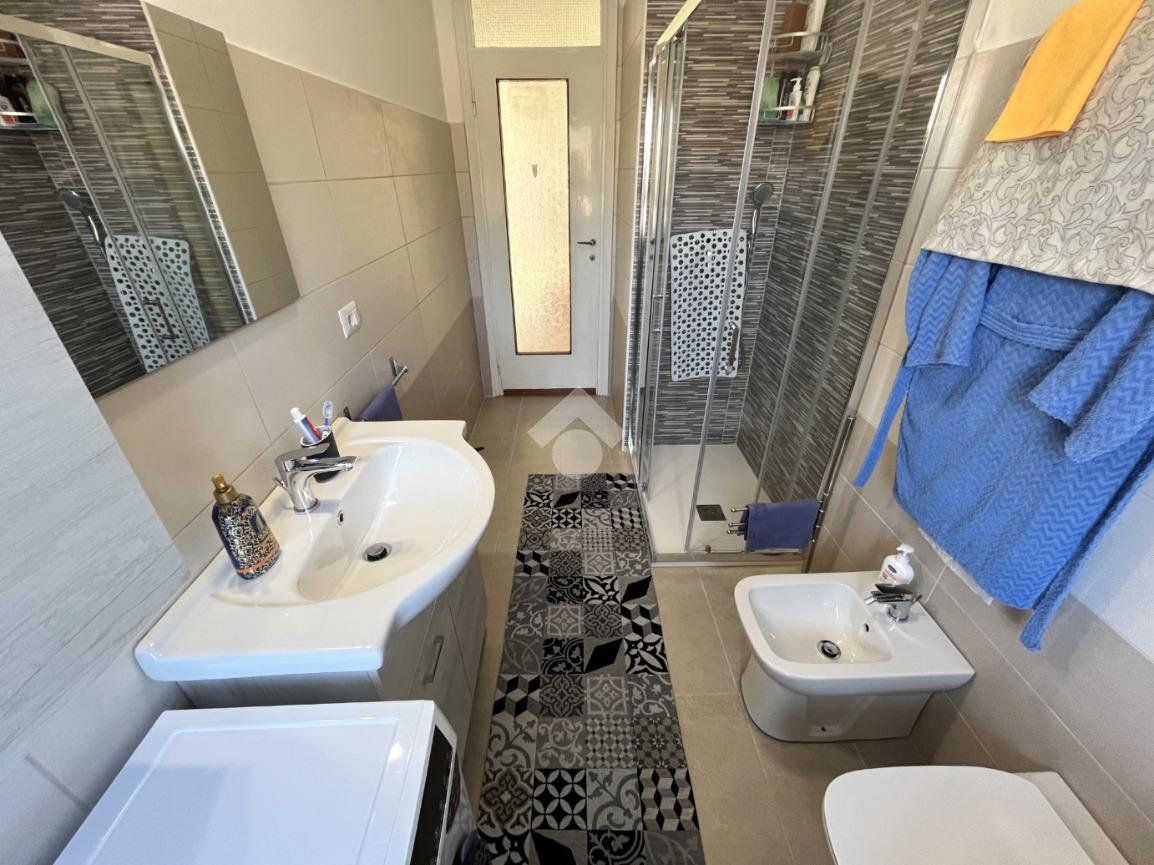 L’appartamento si compone di tre locali ben distribuiti ed è così disposto: ingresso su disimpegno con accesso a un comodo ripostiglio, soggiorno con cucina a vista e balcone, camera da letto matrimoniale con accesso al secondo balcone, camera singola con balconcino alla francese e ampio bagno finestrato con box doccia. La doppia esposizione est-ovest e la numerosa quantità e ampiezza dei punti luce rendono l’appartamento molto luminoso e arieggiato, inoltre il doppio balcone offre la possibilità di godere di uno spazio esterno a tutte le ore del giorno al sole o alla tranquillità dell’ombra per le calde giornate estive.