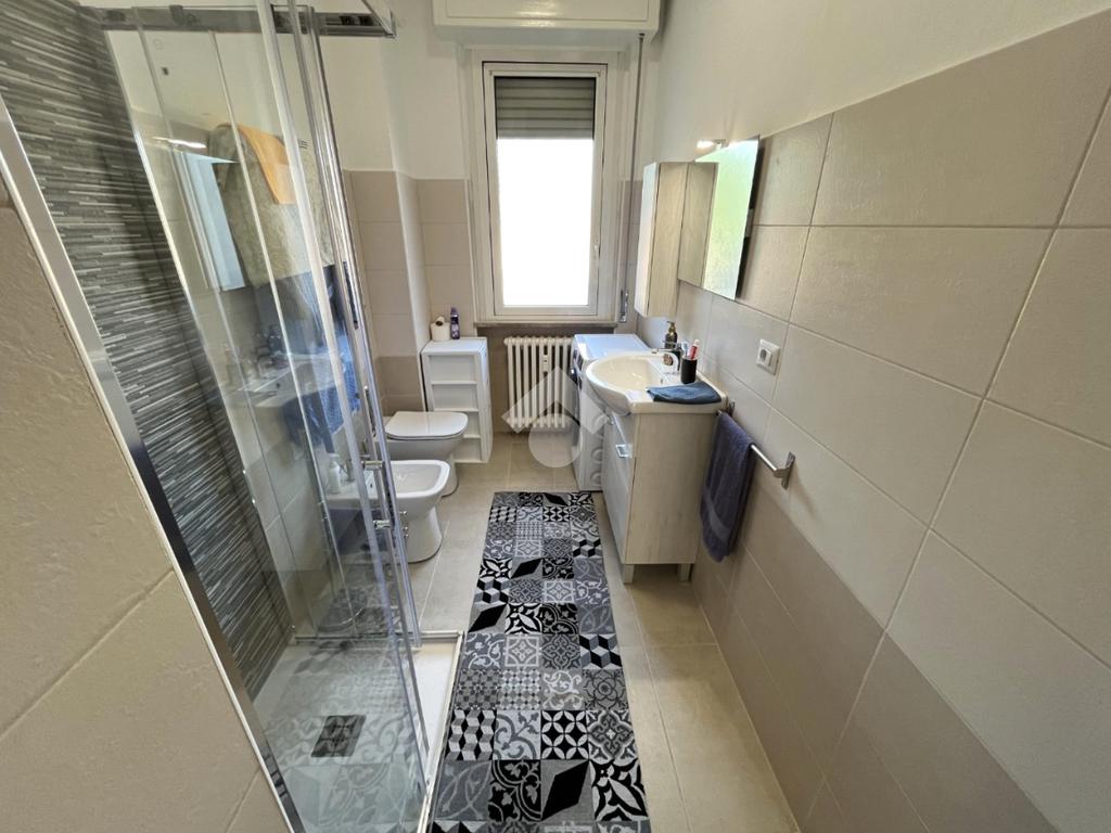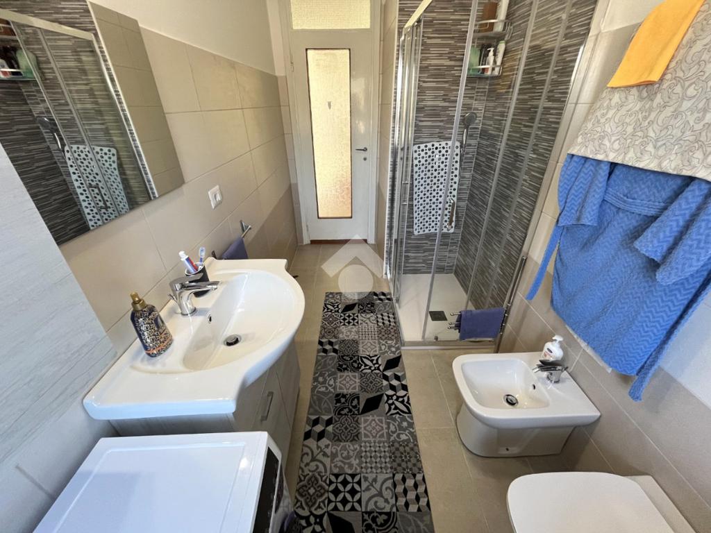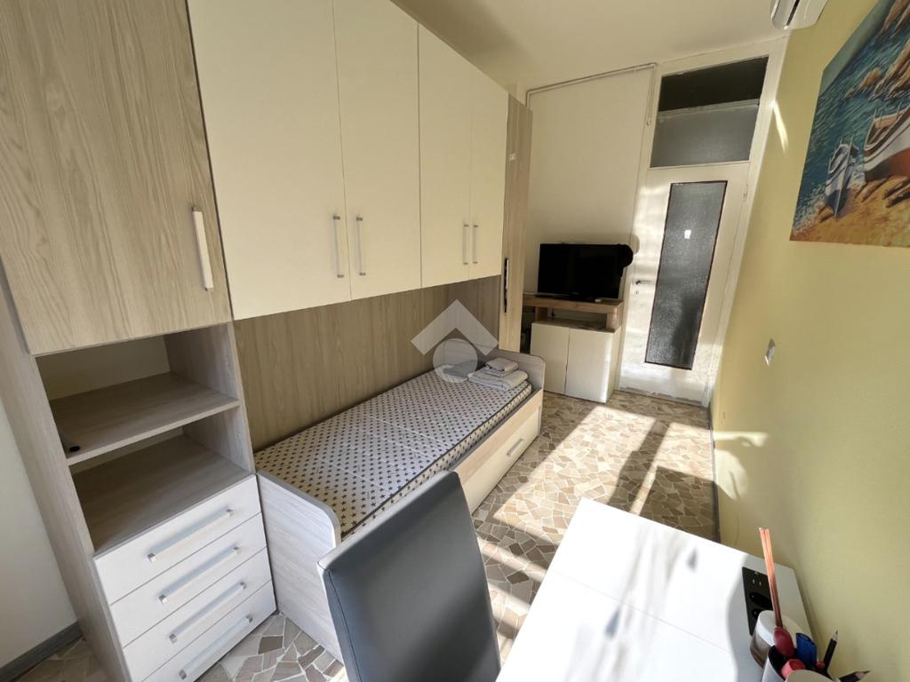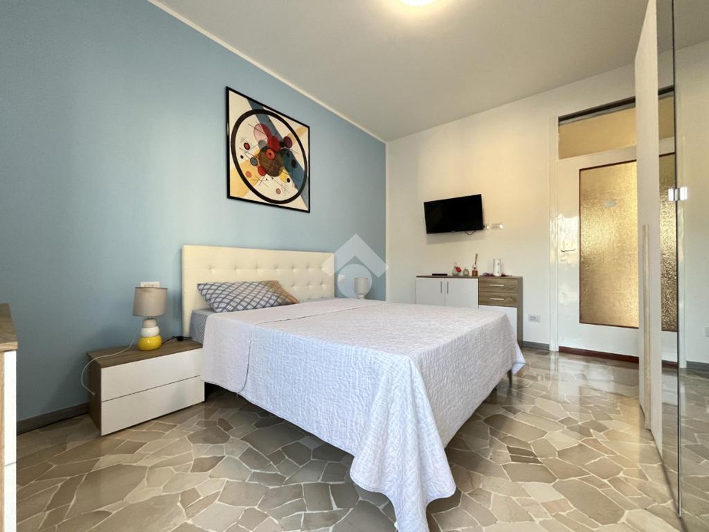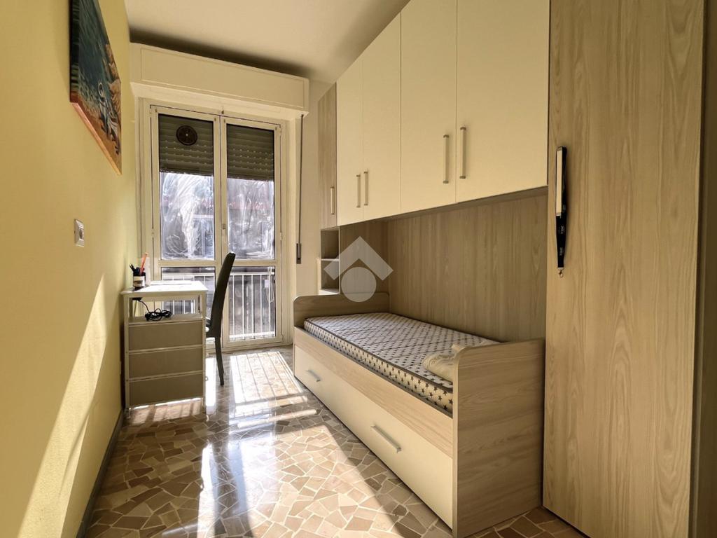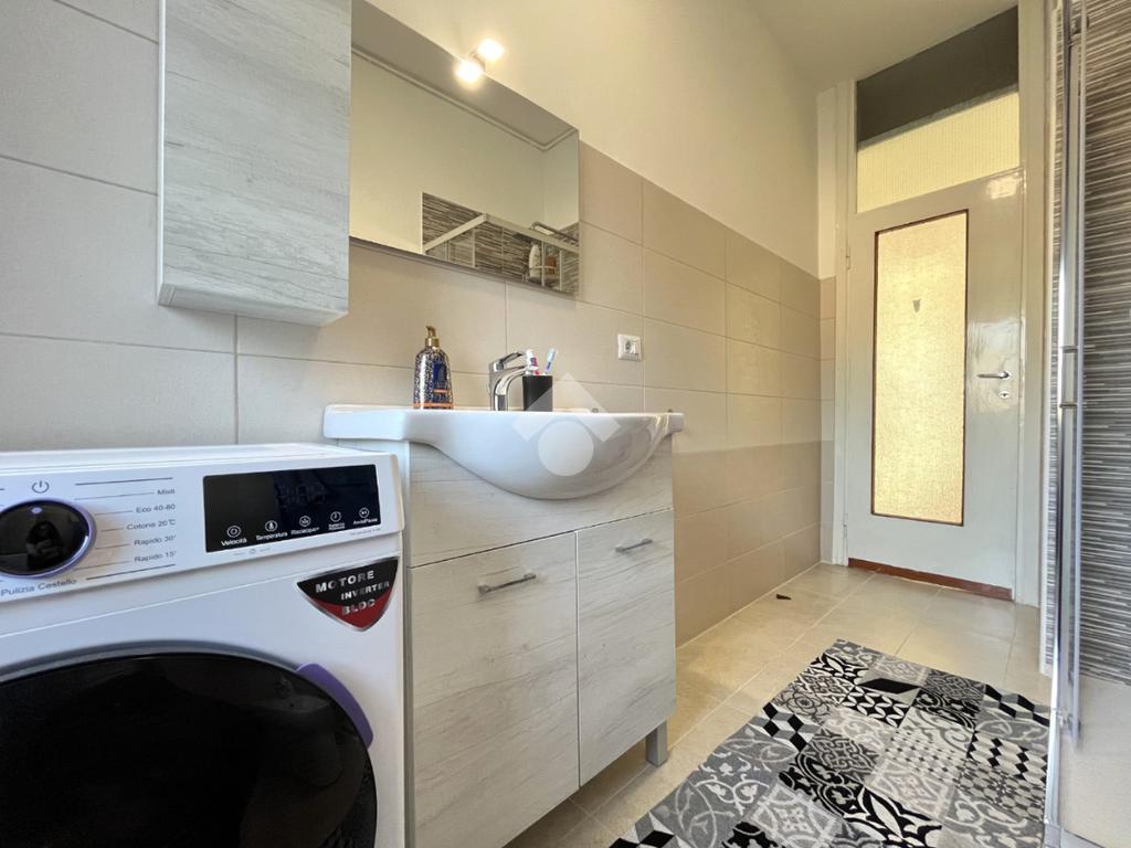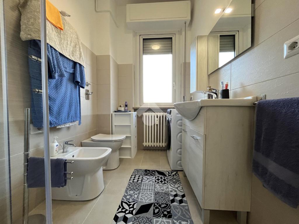 L’appartamento si compone di tre locali ben distribuiti ed è così disposto: ingresso su disimpegno con accesso a un comodo ripostiglio, soggiorno con cucina a vista e balcone, camera da letto matrimoniale con accesso al secondo balcone, camera singola con balconcino alla francese e ampio bagno finestrato con box doccia. La doppia esposizione est-ovest e la numerosa quantità e ampiezza dei punti luce rendono l’appartamento molto luminoso e arieggiato, inoltre il doppio balcone offre la possibilità di godere di uno spazio esterno a tutte le ore del giorno al sole o alla tranquillità dell’ombra per le calde giornate estive.