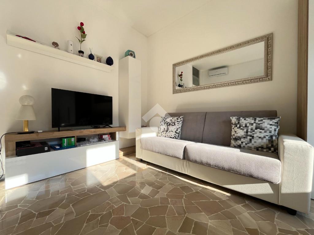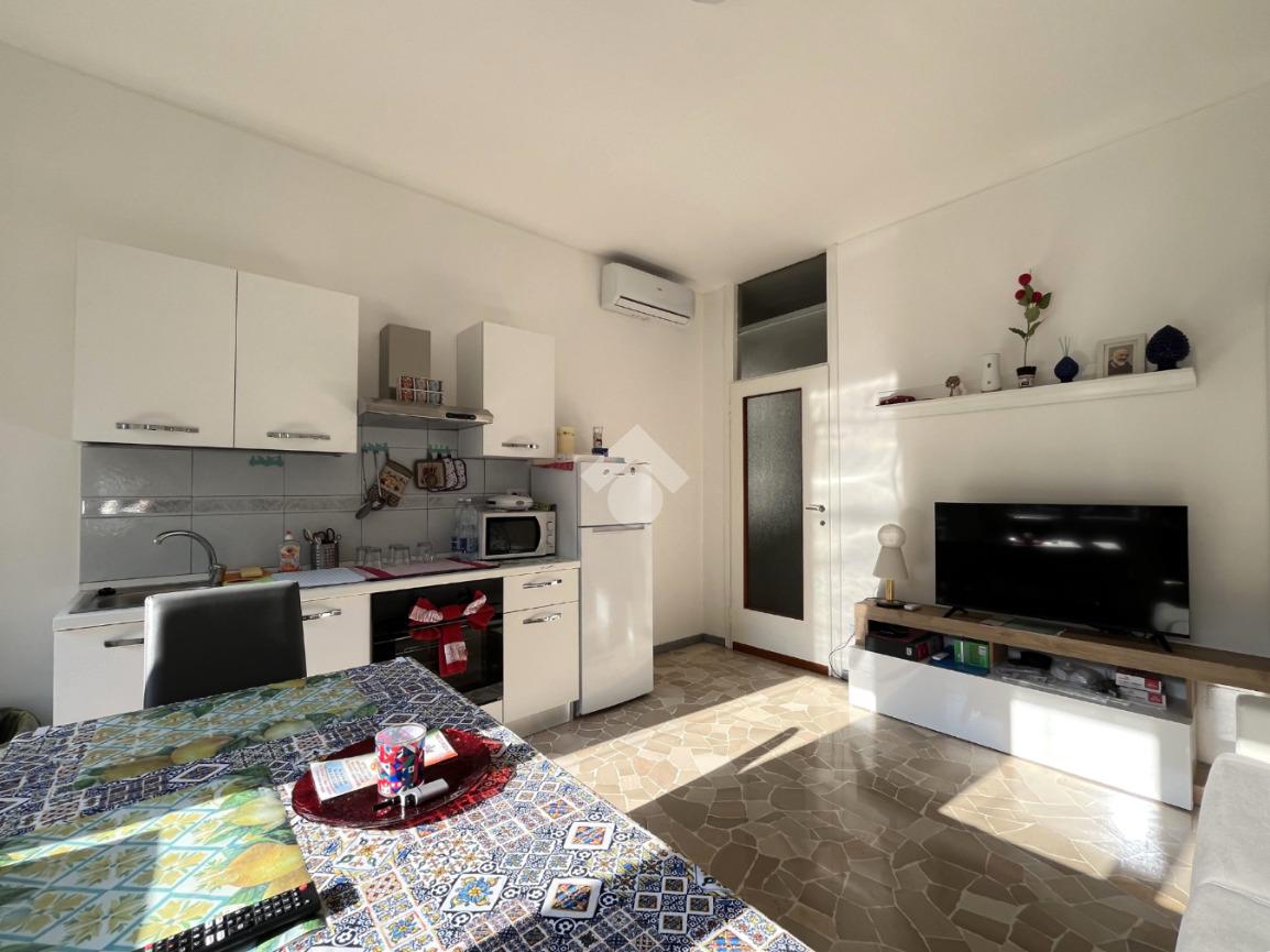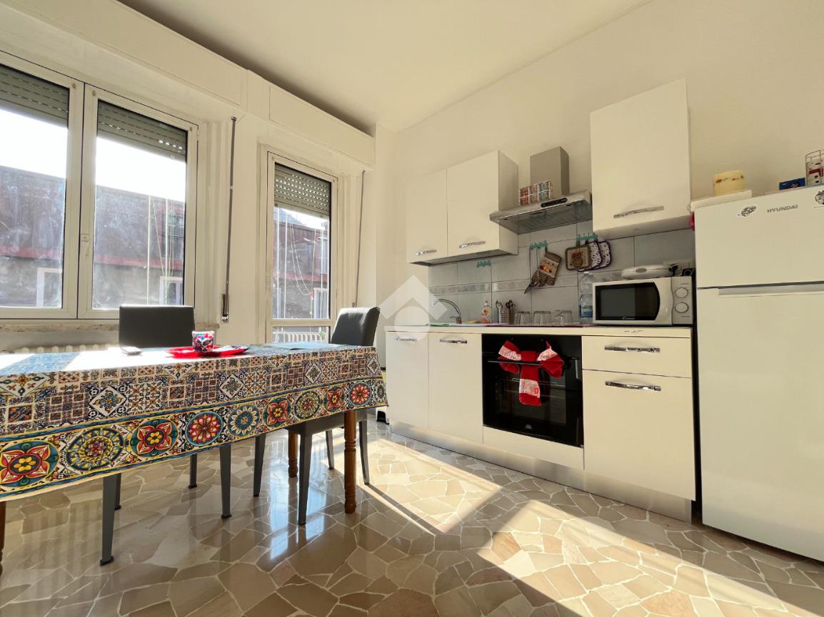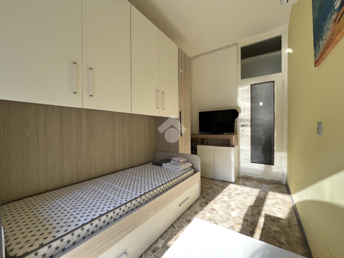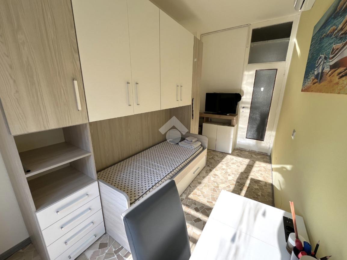 L’appartamento si compone di tre locali ben distribuiti ed è così disposto: ingresso su disimpegno con accesso a un comodo ripostiglio, soggiorno con cucina a vista e balcone, camera da letto matrimoniale con accesso al secondo balcone, camera singola con balconcino alla francese e ampio bagno finestrato con box doccia. La doppia esposizione est-ovest e la numerosa quantità e ampiezza dei punti luce rendono l’appartamento molto luminoso e arieggiato, inoltre il doppio balcone offre la possibilità di godere di uno spazio esterno a tutte le ore del giorno al sole o alla tranquillità dell’ombra per le calde giornate estive.