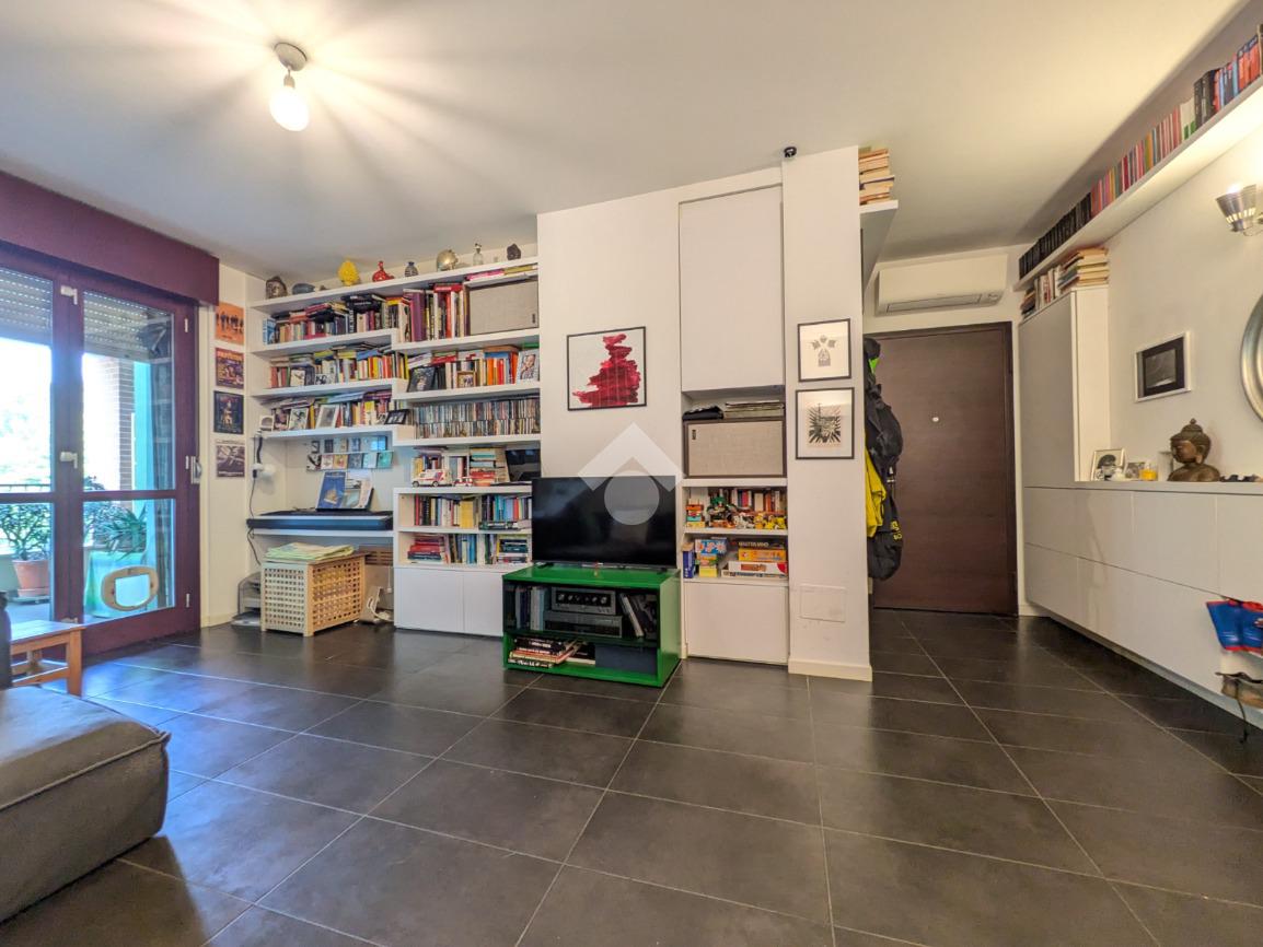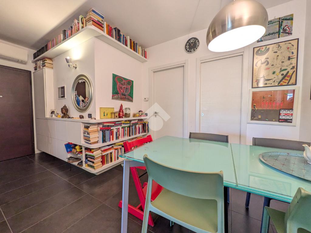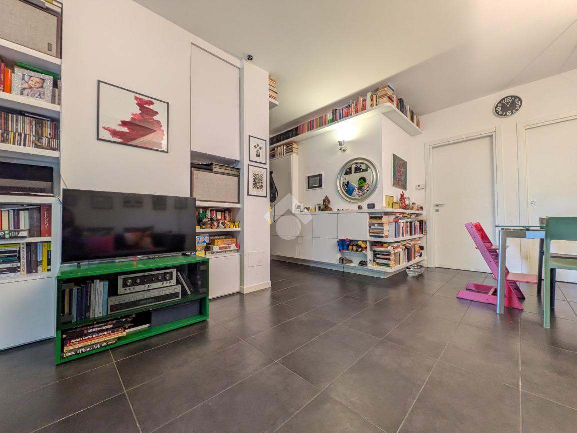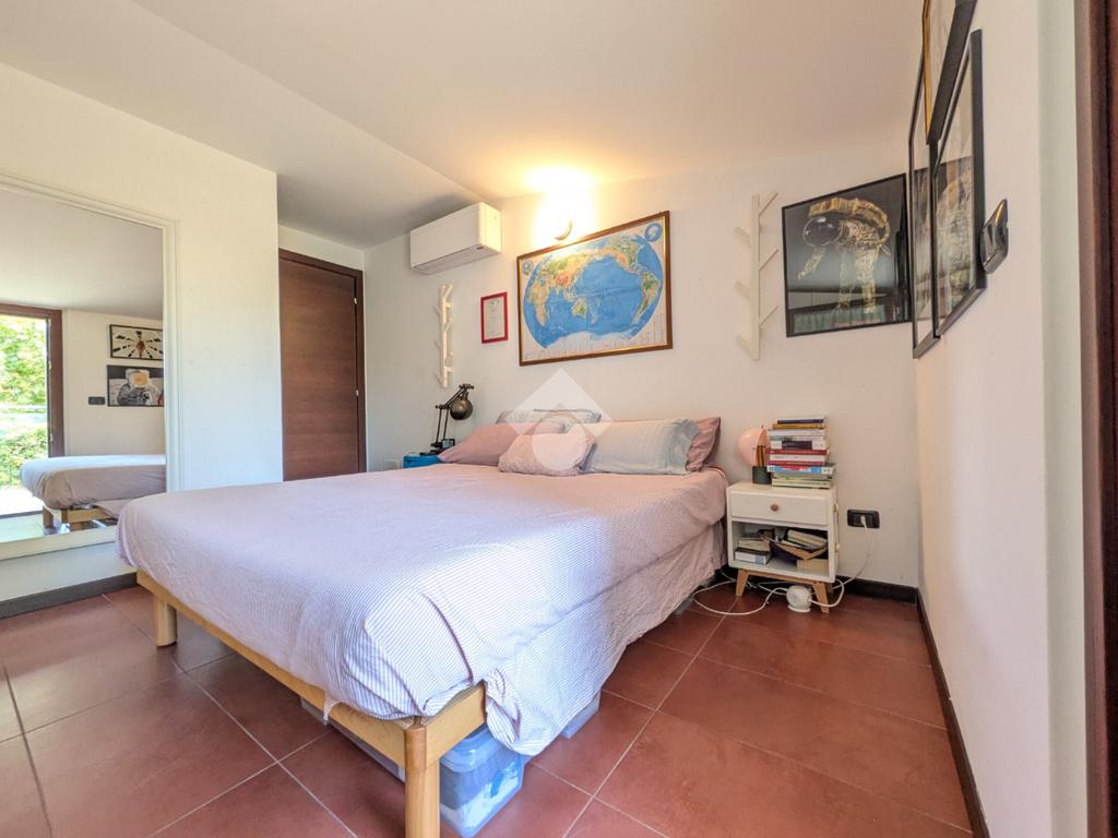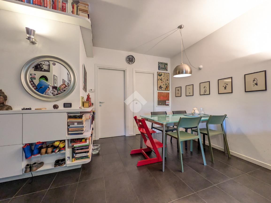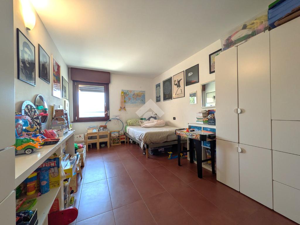 L’appartamento si compone di ingresso su ampia zona giorno con accesso a un terrazzino loggiato con piacevole vista sul verde, luminosa cucina separata, bagno finestrato con box doccia e antibagno con lavanderia; tramite una scala si accede alla zona notte al piano superiore composta di disimpegno, ampia camera matrimoniale, seconda camera con accesso al secondo terrazzino e bagno di servizio con box doccia.
