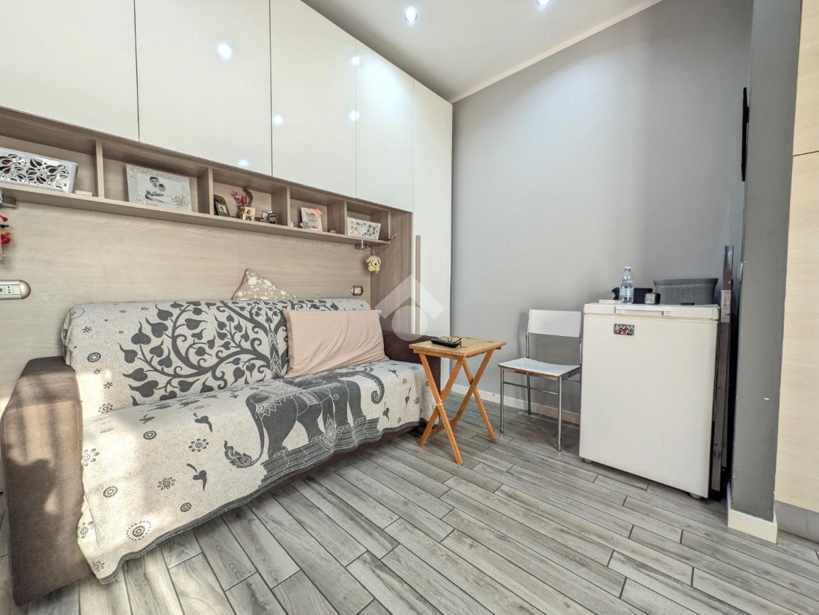 Via Trevi – In stabile civile anni ’60 con servizio di portineria e ascensore, dotato di un ampio e verde cortile, proponiamo in vendita un luminoso monolocale locato posto al 4° piano. L'appartamento - composto di ingresso su disimpegno, zona giorno/notte con angolo cottura a vista e accesso al balcone, bagno finestrato con box doccia - si presenta in ottime condizioni grazie a una recente ristrutturazione con porta d'ingresso blindata, infissi in pvc con doppio vetro, pavimentazione in greso porcellanato effetto legno in tutti gli ambienti. Il riscaldamento è centralizzato a pavimento ed è presente l'impianto di aria condizionata. Completa la proprietà un solaio di pertinenza. L'immobile ha un contratto di locazione in essere fino ad aprile 2027.