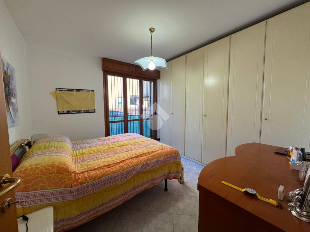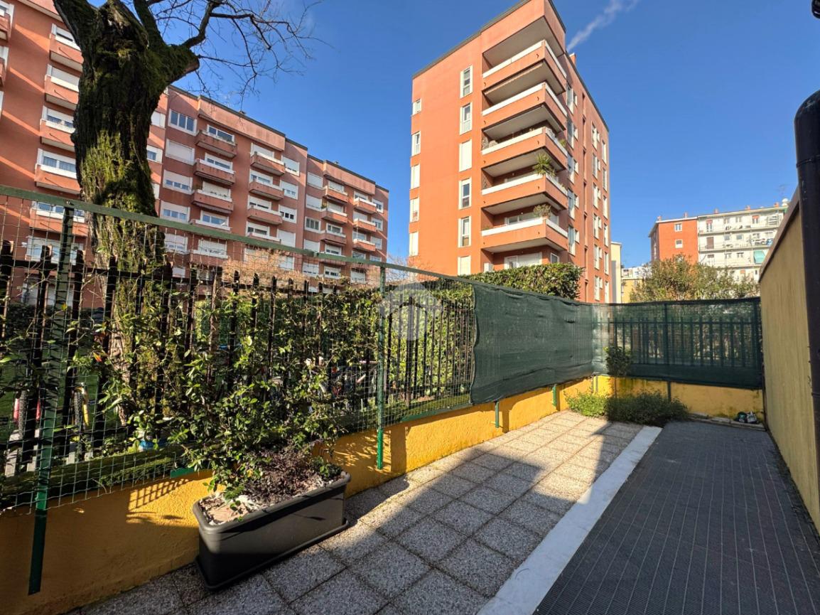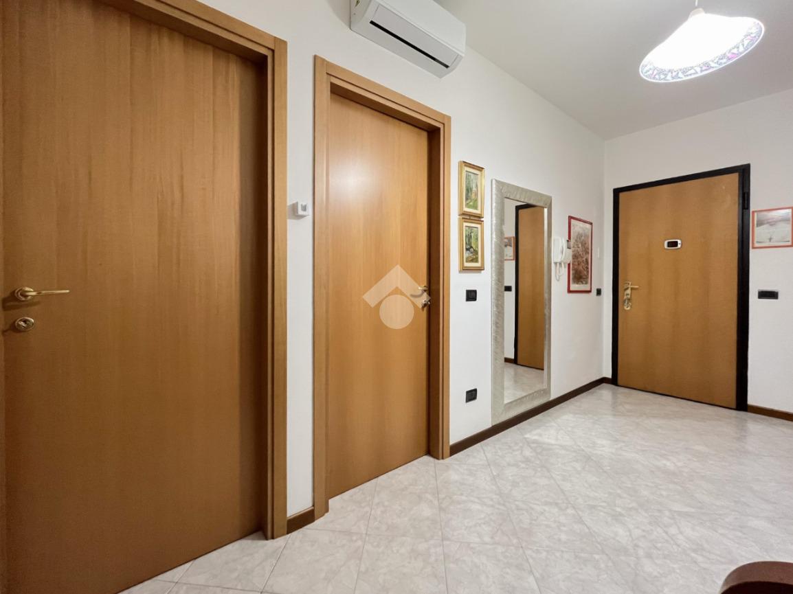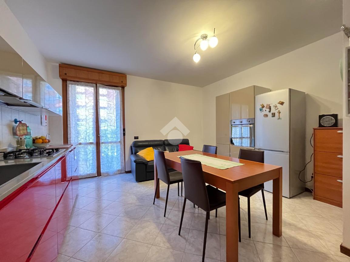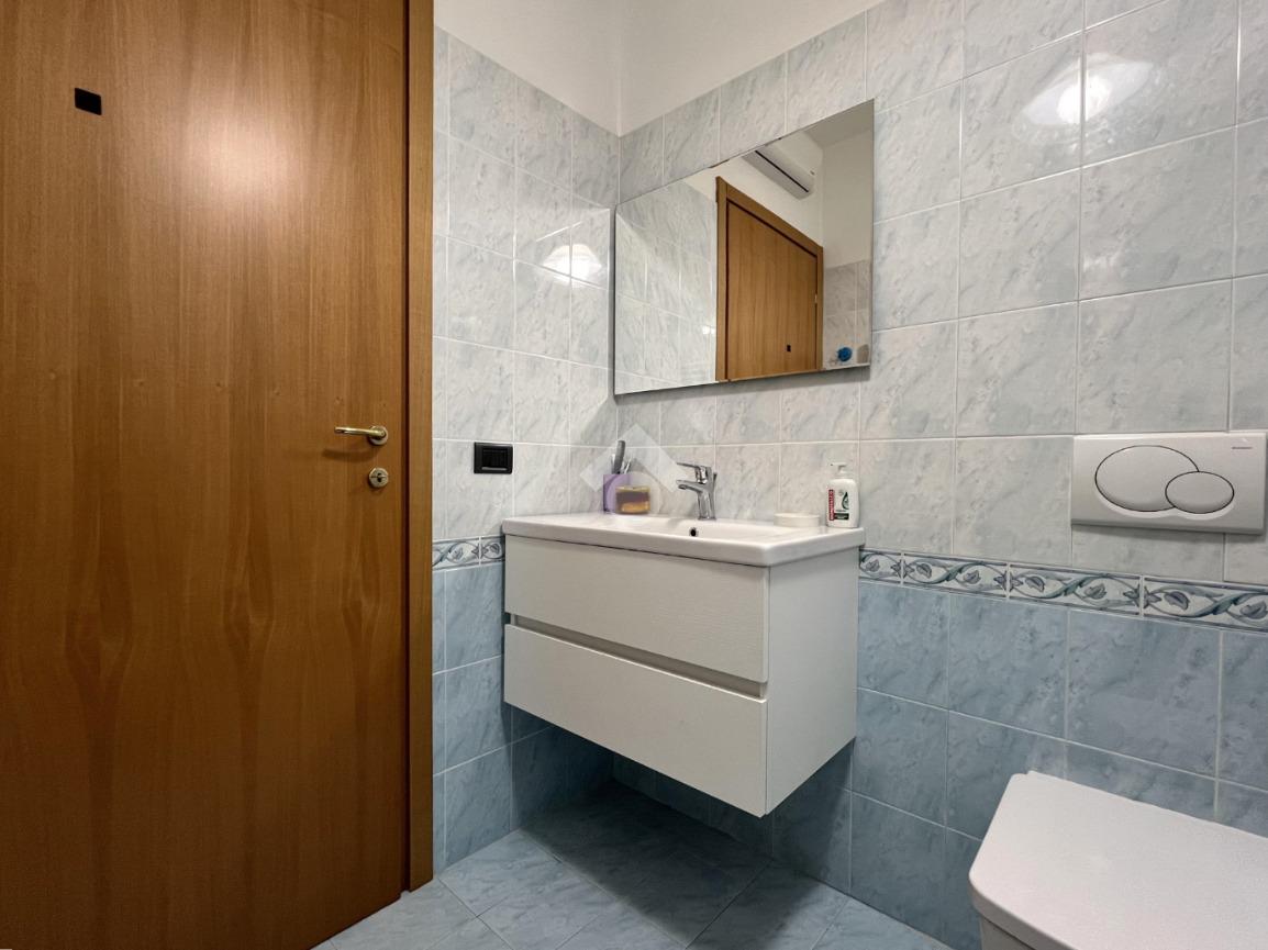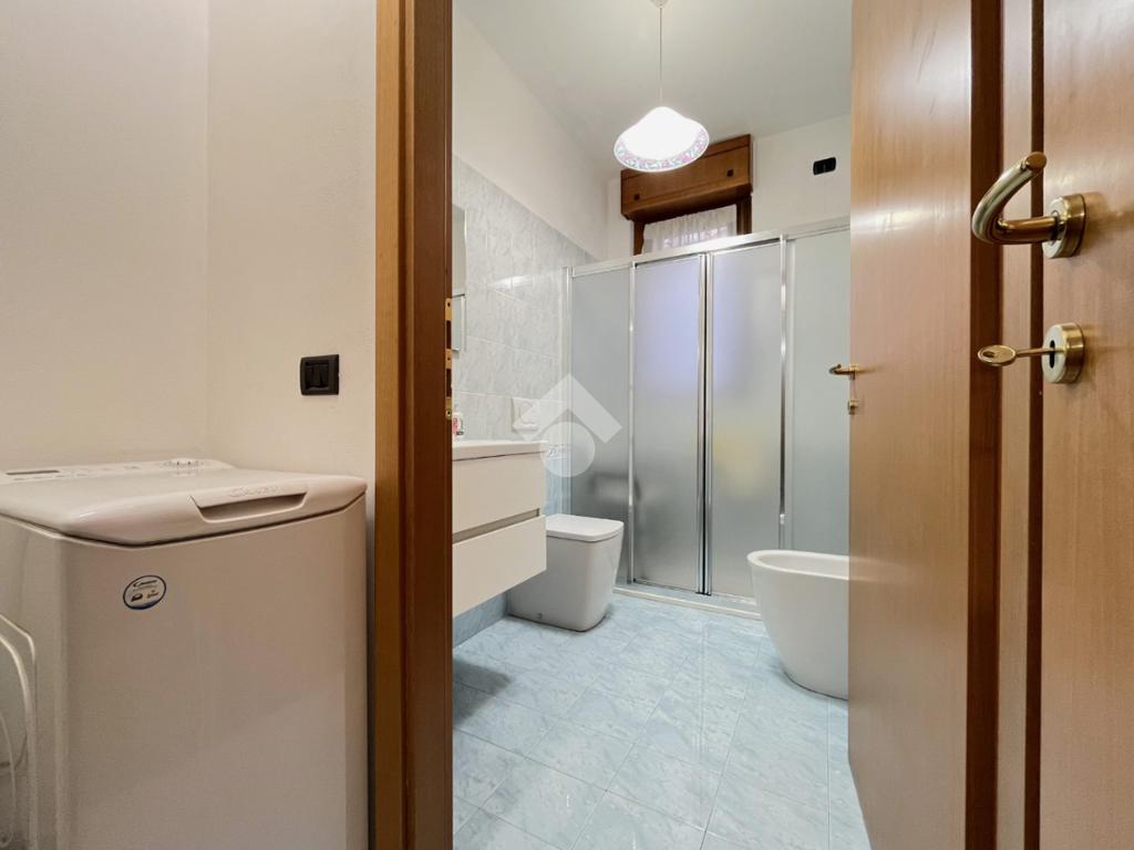 L’appartamento è composto da ingresso su disimpegno con comodo ripostiglio, camera da letto matrimoniale, antibagno con lavanderia e bagno finestrato con box doccia, zona giorno con cucina a vista e accesso al giardino recentemente piastrellato.