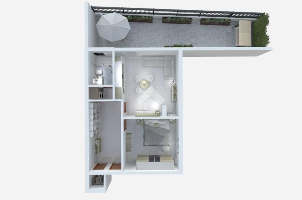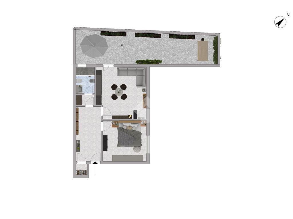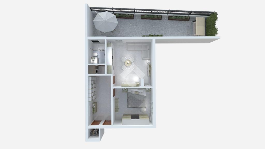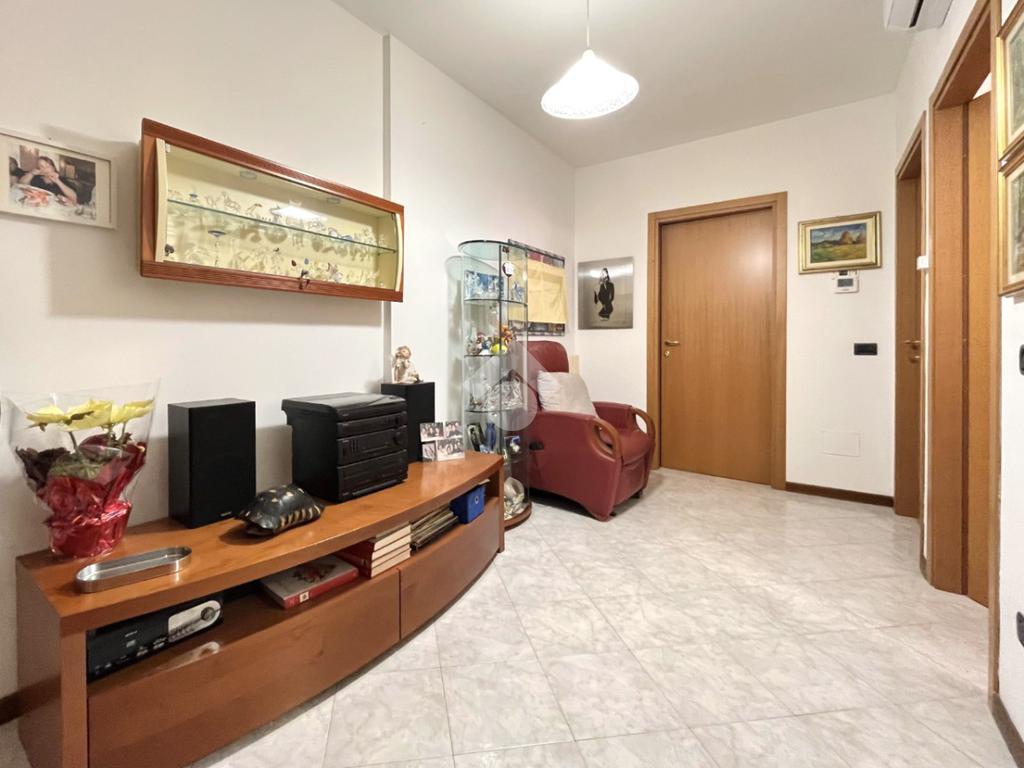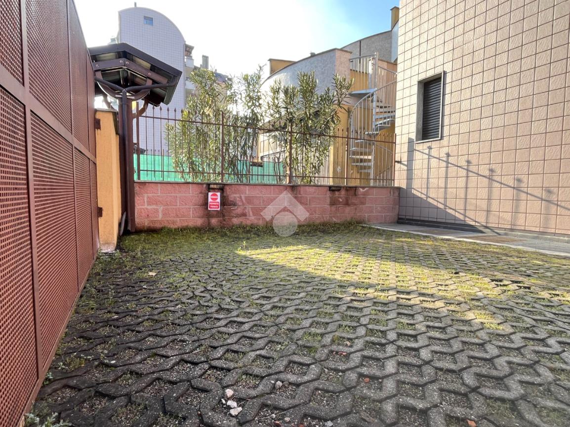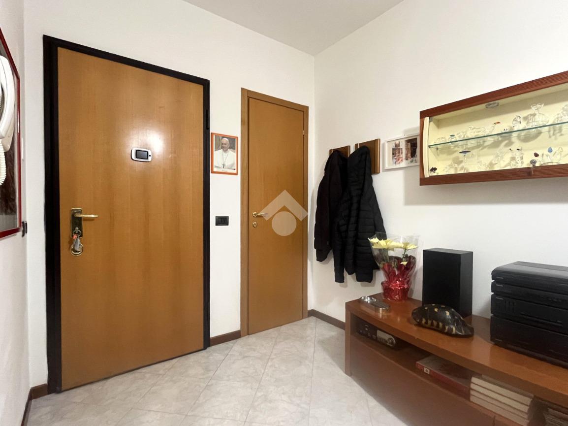 L’appartamento è composto da ingresso su disimpegno con comodo ripostiglio, camera da letto matrimoniale, antibagno con lavanderia e bagno finestrato con box doccia, zona giorno con cucina a vista e accesso al giardino recentemente piastrellato.