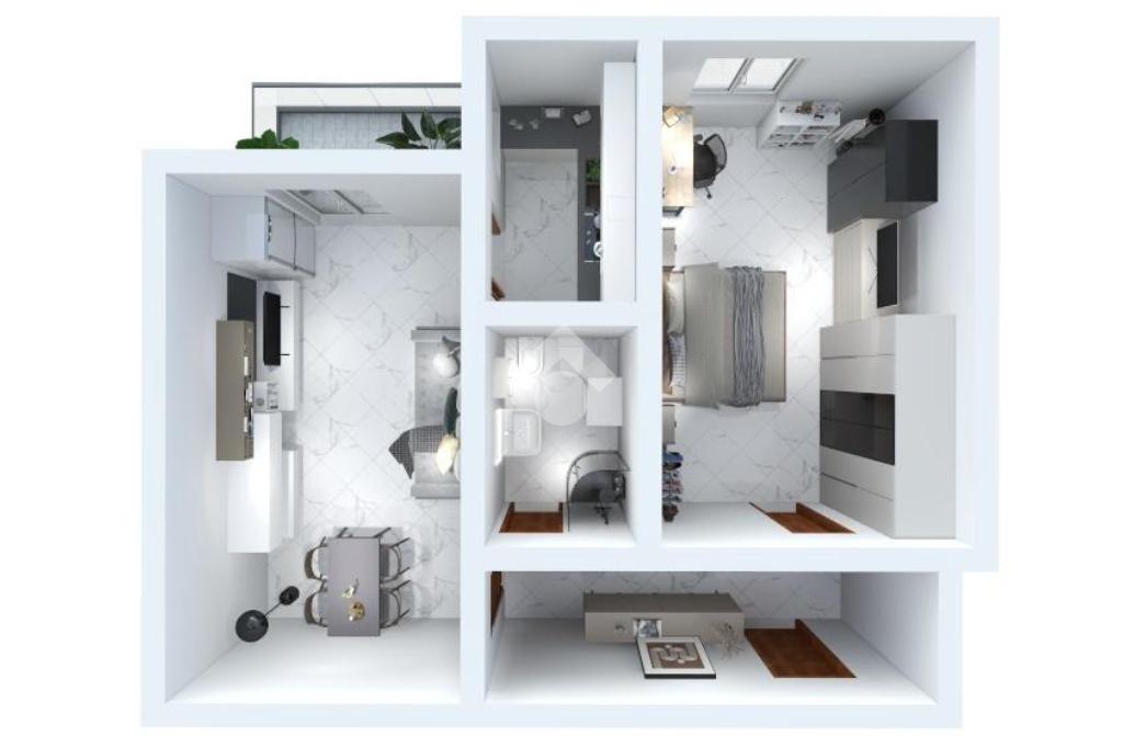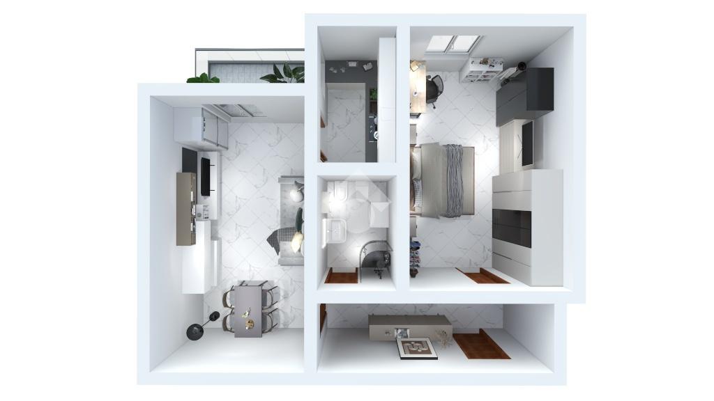 L'appartamento, di circa 60 mq, è così composto: ingresso su disimpegno con comodo ripostiglio aereo, un'ampia camera da letto matrimoniale, un luminoso soggiorno con accesso al balcone e alla cucina separata, completa e funzionale, il bagno è dotato di tutti i servizi essenziali.