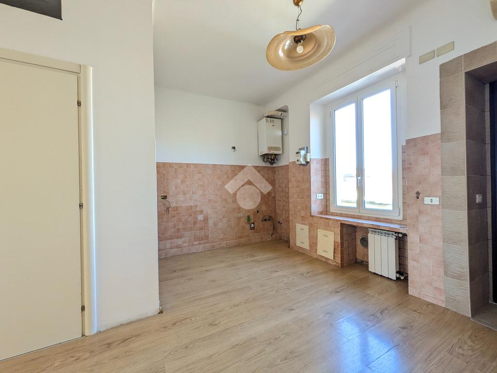 L'appartamento si compone di ingresso su zona giorno con angolo cottura a vista, bagno con ventola di aspirazione forzata e un'ampia camera matrimoniale.